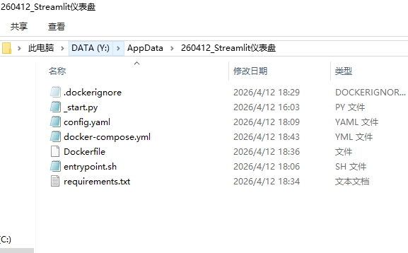 /DATA/AppData/260412_Streamlit仪表盘/config.yaml。 - 生效方式:Streamlit 通常会自动感应变动。若未生效,在 1Panel 容器列表点击 **【确认】重新部署。